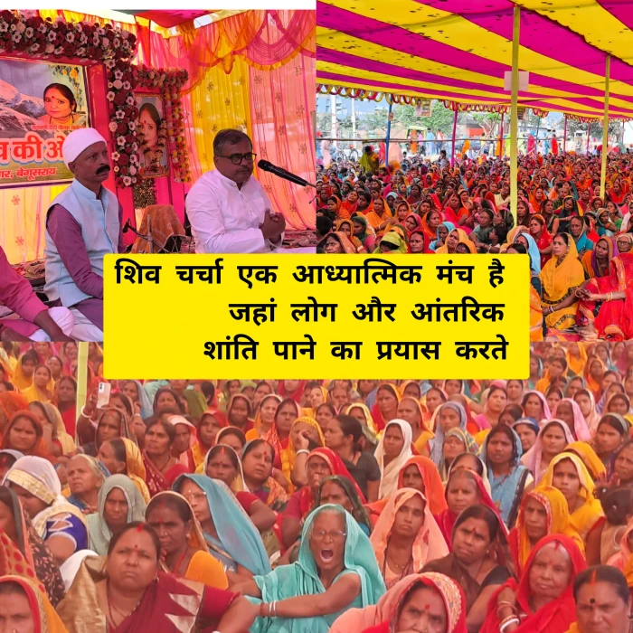 दरसल रविवार को बेगूसराय जिला के बलिया प्रखंड भगतपुर दुर्गा मंदिर परिसर में एकदिवसीय शिव चर्चा का आयोजन किया गया। शिव चर्चा में मुख्य रूप से उपस्थित दरभंगा से रमन प्रधान जी एवं कटिहार से आए रोशन कुमार उपस्थित हुए। आयोजित शिव चर्चा कार्यक्रम में बिहार के विभिन्न जिले से शिव श्रद्धालु पहुंचे। इस दौरान शिव शिष्य परिवार रमन प्रधान ने कहा कि शिव चर्चा भगवान शिव से जुड़ी आध्यात्मिक चर्चा है। जिसमें उनके गुणों कहानियों भक्तों के अनुभवों और जीवन जीने के सकारात्मक के प्रति आधारित है। जिससे मन को शांति मिलती है और नकारात्मकता दूर होती है, इसे एक प्रकार की भक्ति और आत्म-चिंतन का माध्यम माना जाता है।