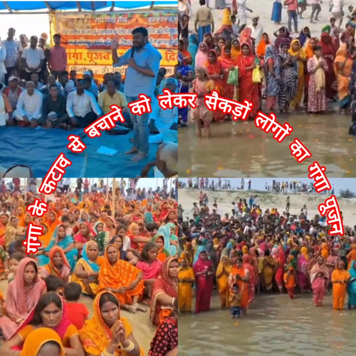 तीन जिलों के पांच पंचायत को गंगा के कटाव से बचाने को लेकर सैकड़ों लोगों का गंगा पूजन के साथ उपवास